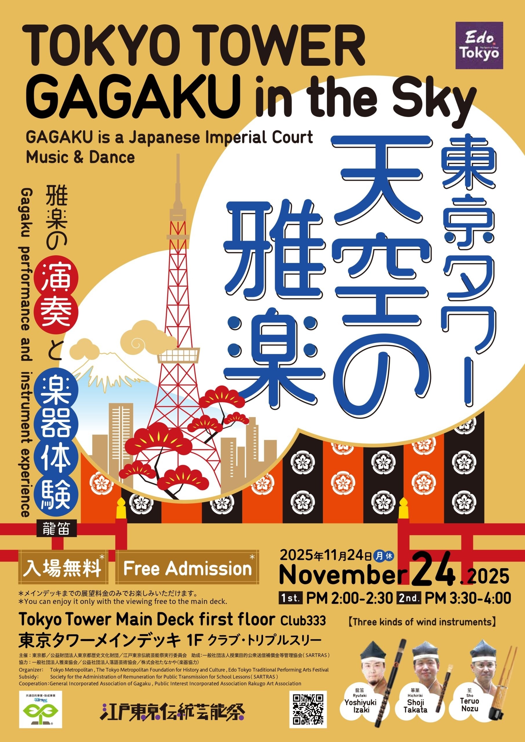 明日、三連休の最終日は東京タワーのメインデッキで雅楽演奏のイベントかあるそうです😍!